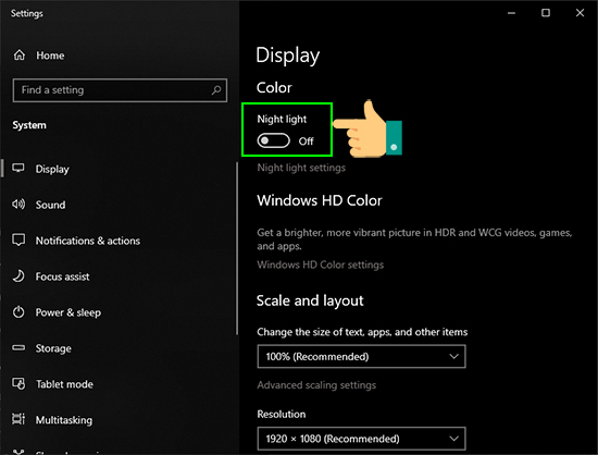 2. Vào mục Display và bật chế độ Night Light