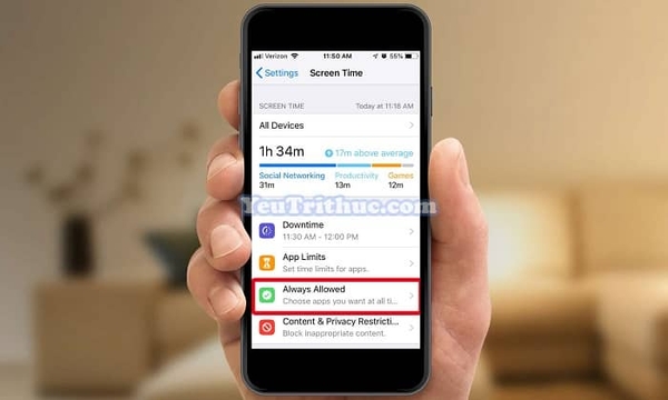 5. Trong mục Screen time, chọn Always Allowed để thiết lập nhóm App/App nằm ngoài giới hạn