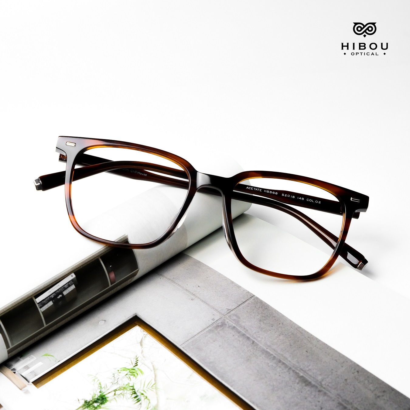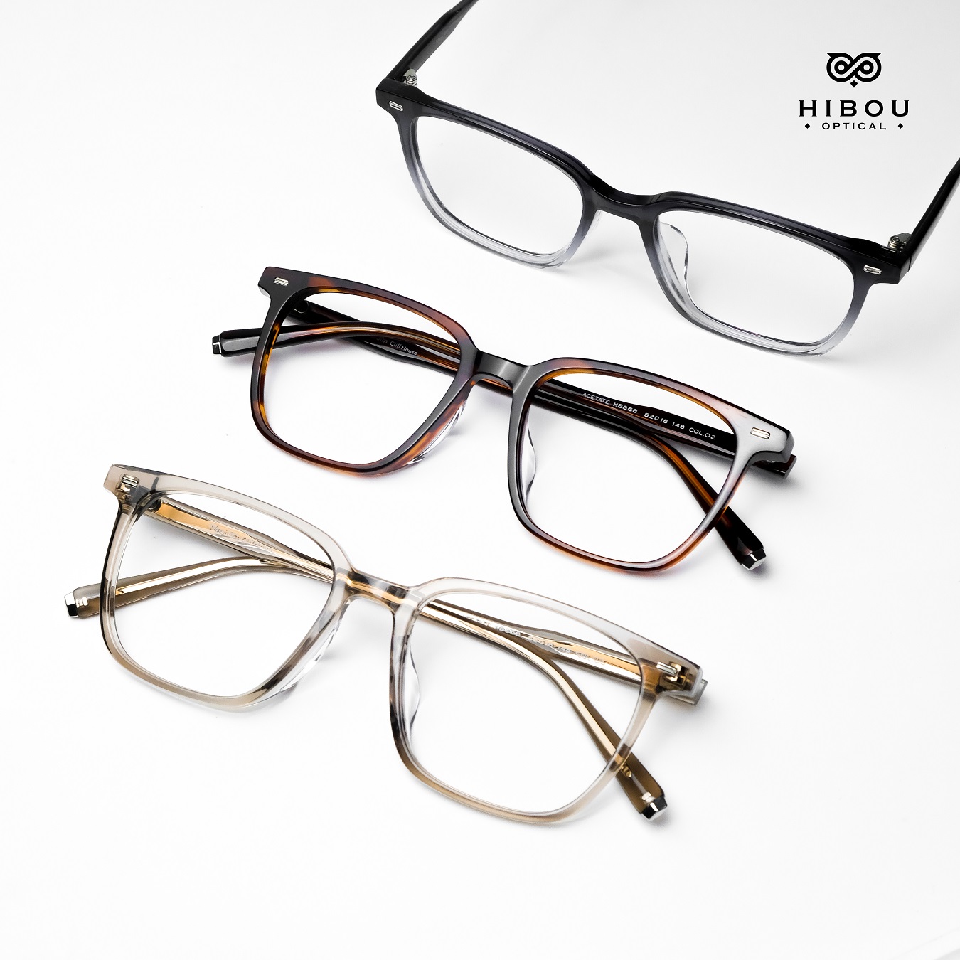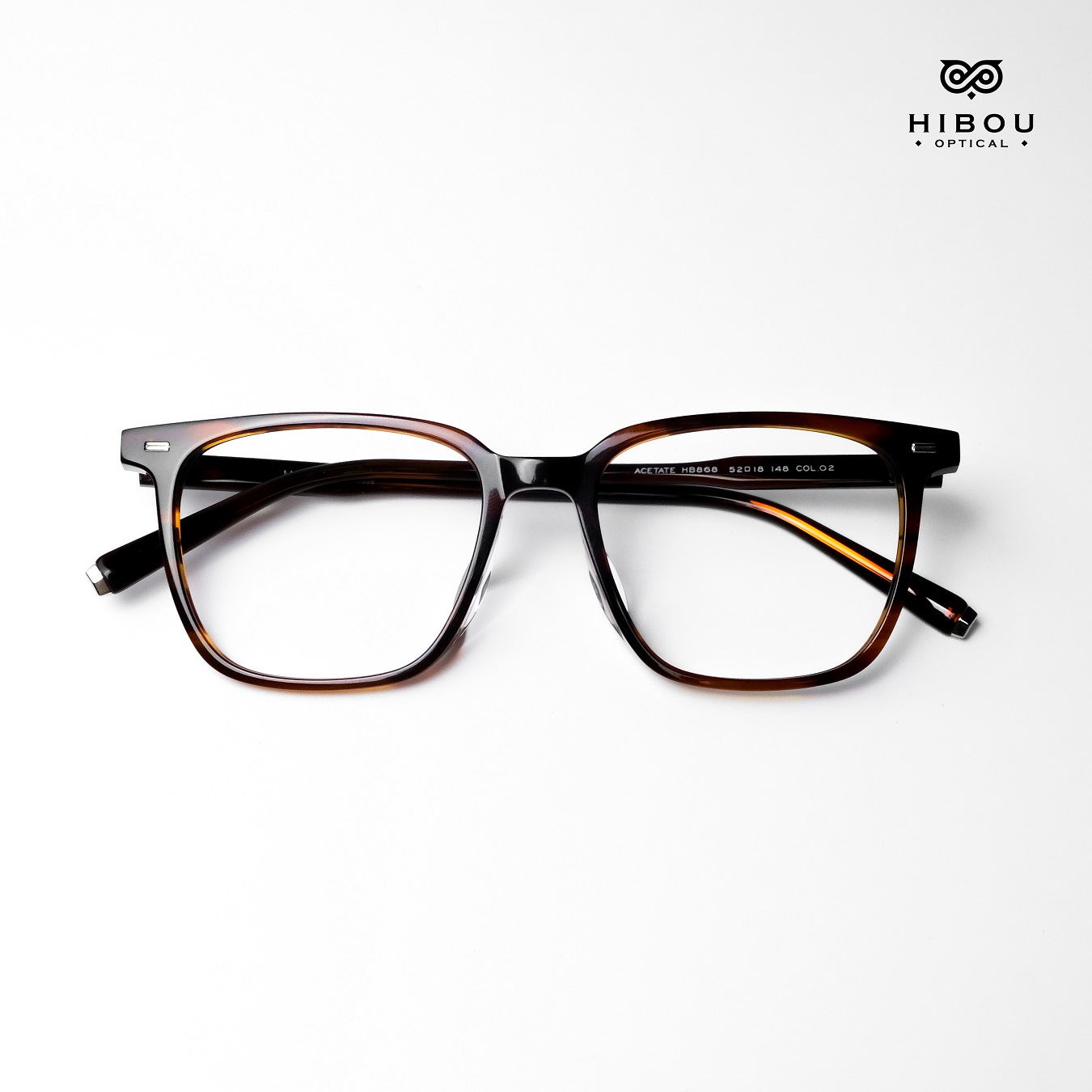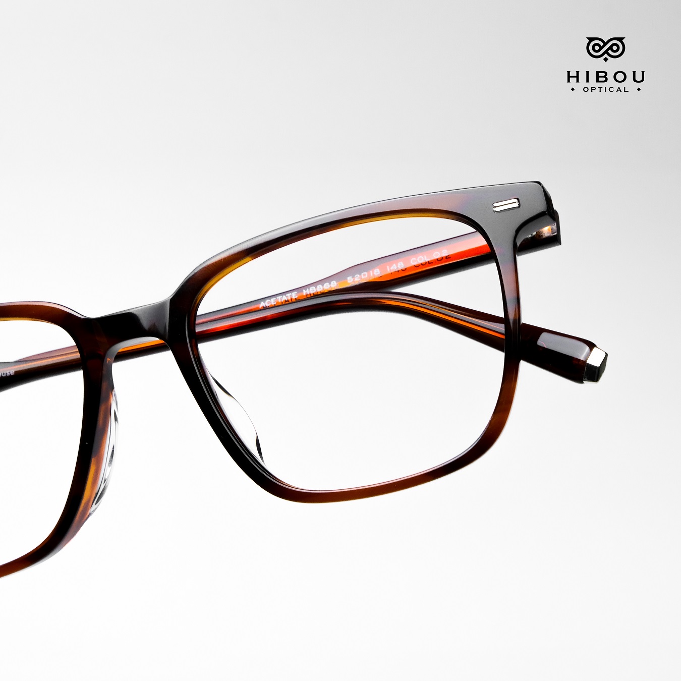 Gọng kính cận nam nữ HB868 thuộc dòng gọng kính cận cao cấp tại Hibou Optical. Gọng kính cận dày này được làm từ chất liệu nhựa cellulose acetate (gọng nhựa đúc đàn hồi) chắc chắn với màu sắc độc đáo.