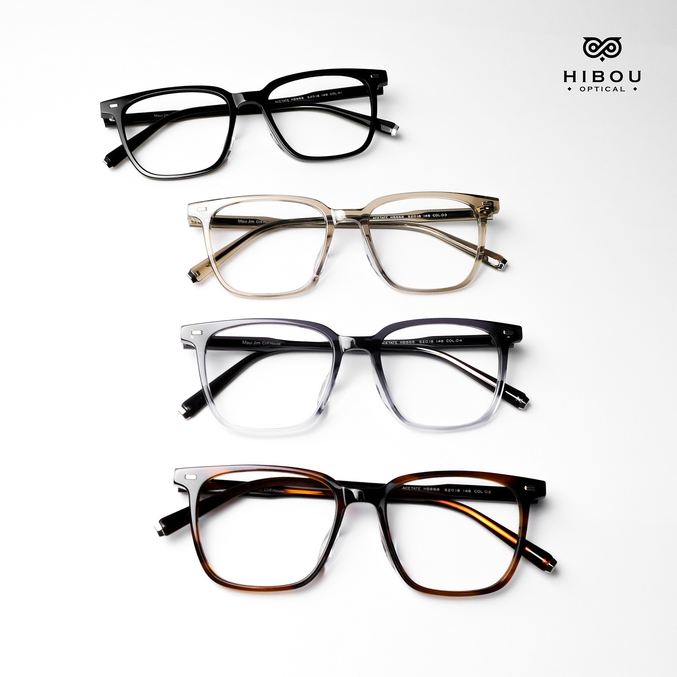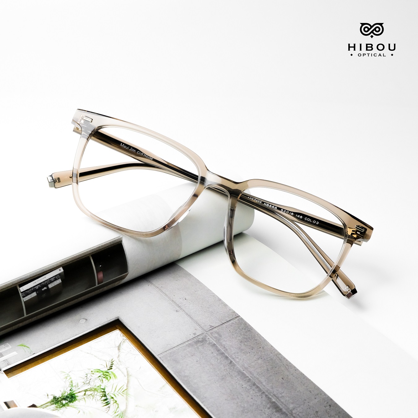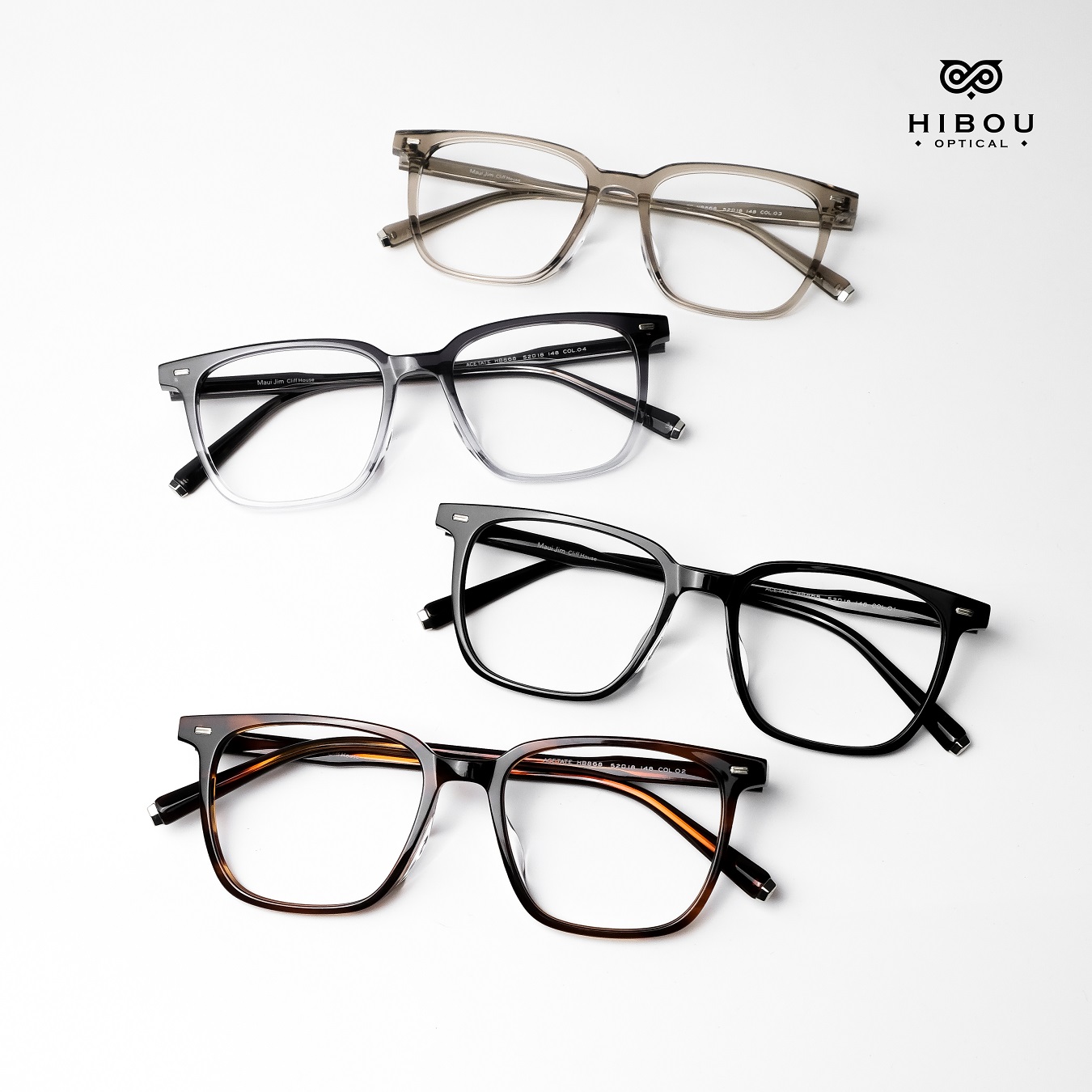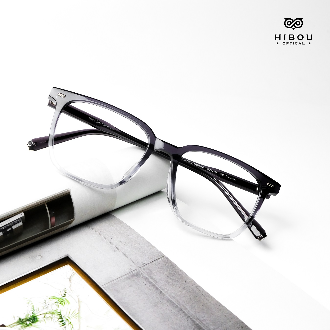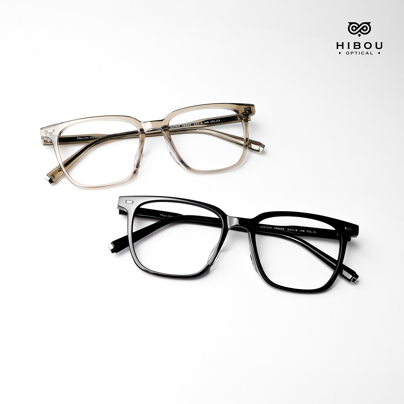 Gọng kính cận nam nữ HB868 thuộc dòng gọng kính cận cao cấp tại Hibou Optical. Gọng kính cận dày này được làm từ chất liệu nhựa cellulose acetate (gọng nhựa đúc đàn hồi) chắc chắn với màu sắc độc đáo.